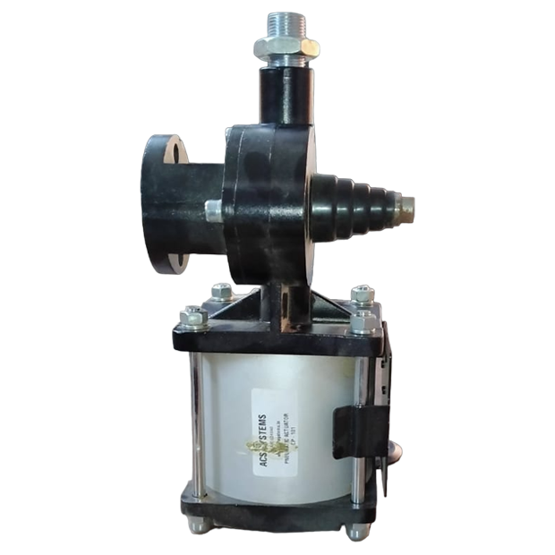 A Pneumatic actuator in butterfly valve controls the flow of material by means of a disk, which turns on a diametrical axis inside a pipe or by two semi-circular plates hinged on a common spindle, which permits flow in only one direction.